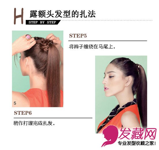 step5:再将辫子向后拉扯缠绕在马尾上。