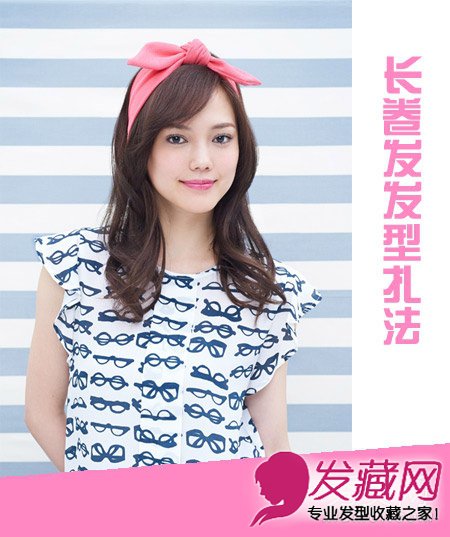 斜刘海卷发优雅随性,搭配一只粉红色蝴蝶结发箍,女人味十足。