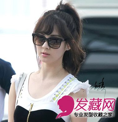 清爽活力的马尾辫加上斜刘海修颜瘦脸,很韩系的一款简单长发扎法,搭配高扎发辫更能展现出女生俏皮可爱的气质。