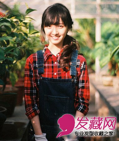 低调的棕色染发衬托女孩皮肤的白皙,斜扎的中长发卷发马尾辫给人活泼俏皮的感觉,简单扎起的马尾辫干练利落。