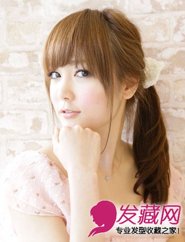 直发马尾最显清纯减龄,再搭配一朵白色发饰,瞬间变身清新美少女哦。