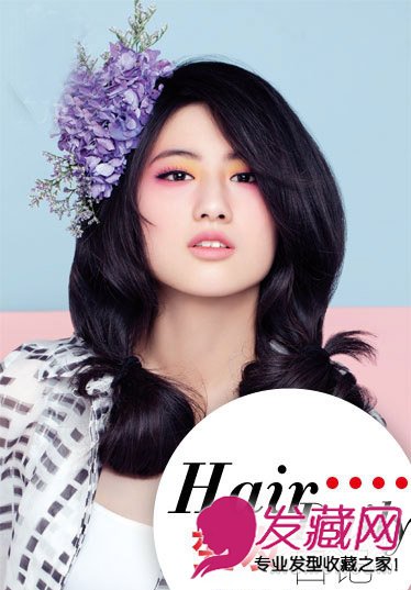 打破双马尾一向给人感觉天真稚气的惯性思维。蓬松的偏分既可以修饰脸部轮廓,又能让女性妩媚气质升级。为了平衡少女与熟女两种风格,特意在马尾的发梢扎上两个小发包,给人感觉少女有余,熟女未满,恰到好处
