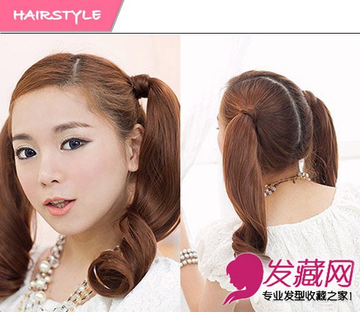 很多女生喜爱的潮女范双马尾辫,斜刘海扎发突出立体感的脸型,淡淡的妆容和浅色眼影,令形象更清新时髦,活力动感。
