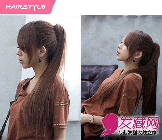 斜刘海带着优雅和蓬松的感觉,梳在脑后的高马尾,自然不失顺滑的感觉,大方秀气的梳发也添精致和甜美。