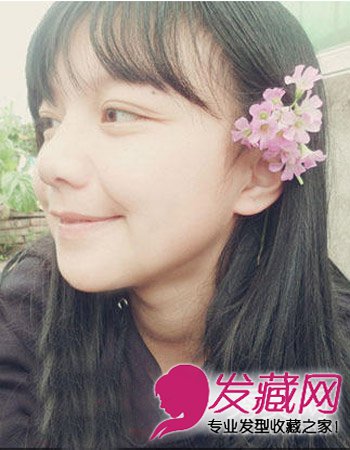 这一张特别像何炅,从侧面看眼睛更别有一翻味道,清纯的长直发发型,空气刘海更显气质,别于耳间的花朵显出一种别致田园风格。十足的个性。
