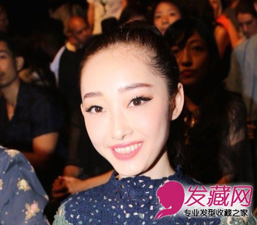 红楼女星蒋梦婕,这次的小清新造型外国人应该很喜欢吧,这样秀场的单眼皮美女很符合外国的审美。简单的露额扎发发型,干净的妆容很是抢镜。
