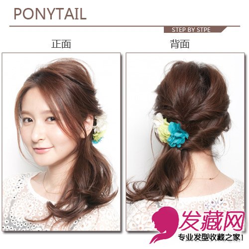 层次扭转侧扎搭配甜美的发饰给人柔美感,而凌乱感营造出个性,这款甜美与个性结合的马尾,是MM必学的马尾。