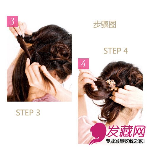 step 3:将左侧的发束进行扭转,然后缠绕在马尾扎发处。