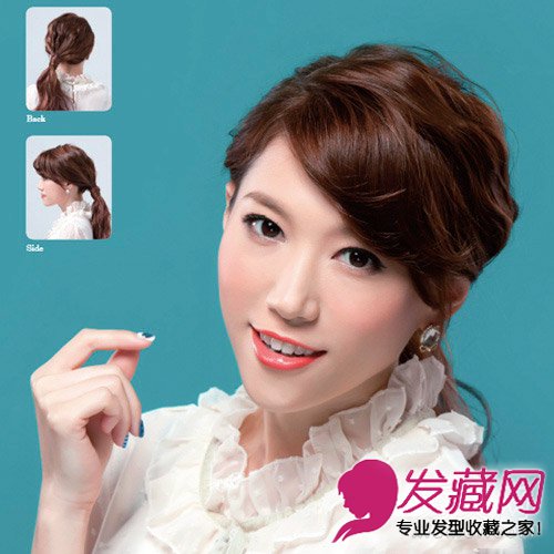 自然不造作的卷度,多层次弧度的刘海,同时运用缠绕技巧创造出目前流行的侧低马尾造型,女人味与知性美兼具。