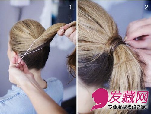 2.抽出一绺头发沿着马尾根部缠绕,遮挡住橡皮筋,这样看起来会更加美观。