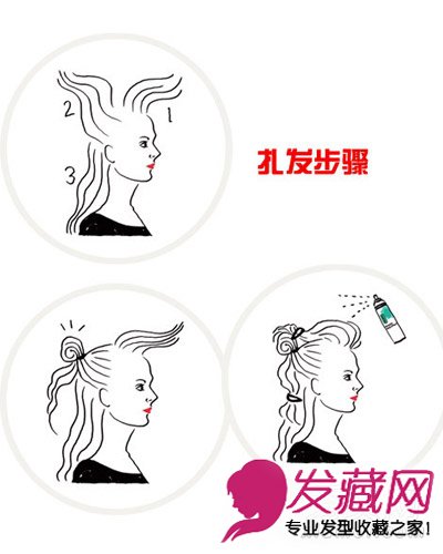 step3:再将前额的刘海向脑后固定,喷上定型水。
