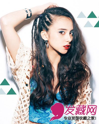 长卷发翻转后沿着脸颊摆动下来,酷炫十足。右侧的精致小辫子更显个性。
