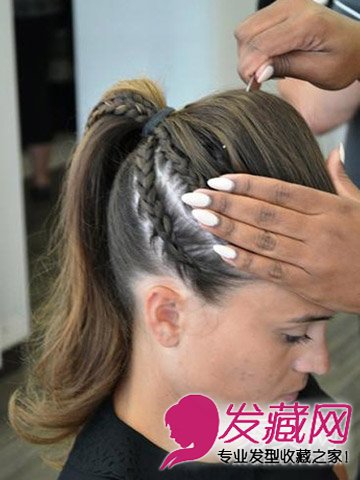 Step7.最后如果想让马尾看起来更加蓬松时尚的话,可以使用小梳子对头顶部位的扎发进行刮梳以达到蓬松目的。然后就完成了这款甜美俏皮的马尾辫啦。