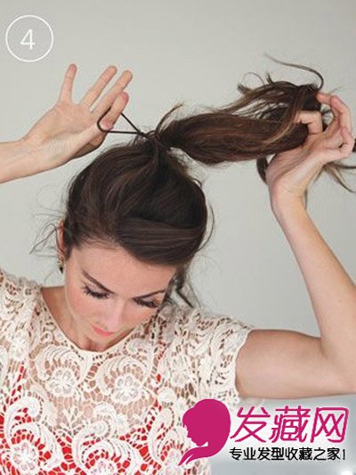 4、用皮筋单独地将上半部分头发扎成紧马尾。
