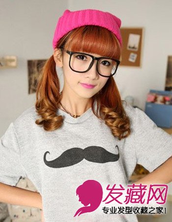 厚重感 刘海凸显出女生娇小俏皮的一面,时尚的卷发双马发尾造型,与眼镜和帽子的搭配显得天衣无缝,休闲时尚而且修颜百搭哦。