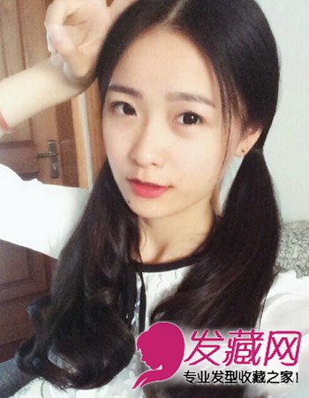 气质的中分长卷发轻松打造出双马尾的甜美感出来,清爽的露额造型打造了气质的一面,简单的打造出一款中长发梨花头扎发,甜美无比。