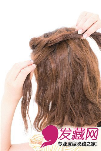 把中分的前刘海再分成2部分并拧绞成螺旋形般互相交叉