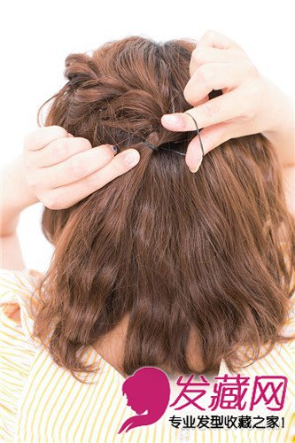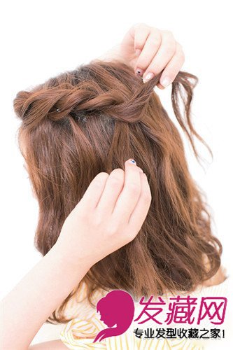 只把下面的发束少量挽起,补足发束的同时紧紧拧绞集中起来