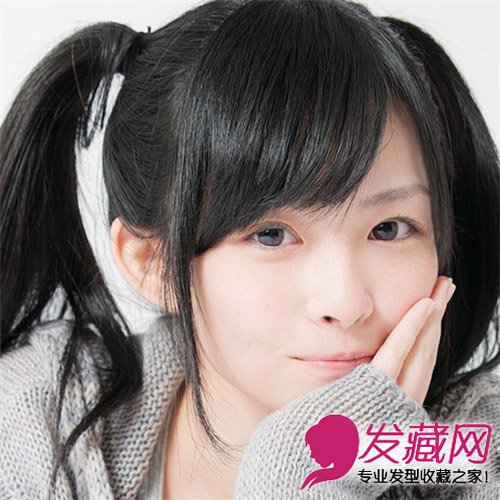 高扎的斜刘海双马尾依旧元气爆棚,垂顺的发尾非常有层次感,刘海也很好的修饰了脸型。约会中用这款卡哇伊的LOOK瞬间秒杀男神。