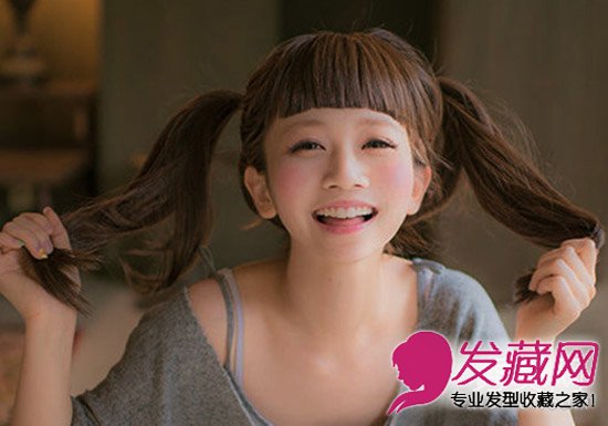 谁说只有黑色才能驾驭双马尾?棕色的发色依旧亮眼,日系超流行的露眉齐刘海搭配稍卷的大双马尾,透明感急速上升,绝对是约会的杀手锏!