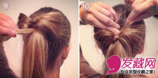 取一小缕头发,在蝴蝶结中心缠绕一次,用发夹固定。