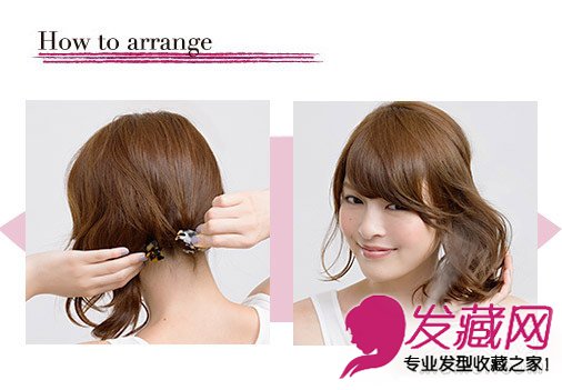 step1:将右侧的头发别在左侧并用发夹固定。