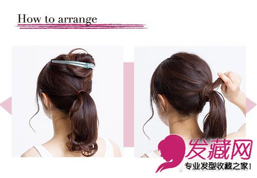 step1:取出头顶的头发将脑后的头发绑成高耸的马尾。