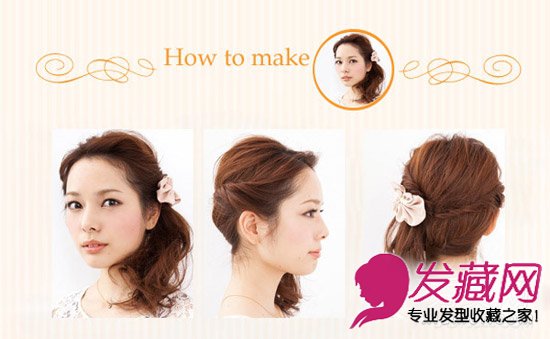 通过扭转的发束将马尾变得更加甜美一些,搭配上粉色发夹就更是美美哒。