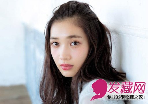 前额的刘海用发夹固定在头顶,露出光洁的脸蛋,尽显清爽唯美。
