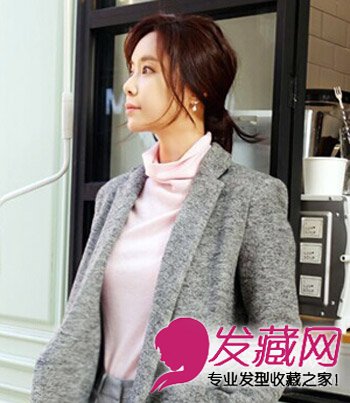 知性OL最爱的一款韩式简单扎发,侧分长发扎低马尾,蓬松的斜刘海修颜,搭配侧扎发时尚俏皮。