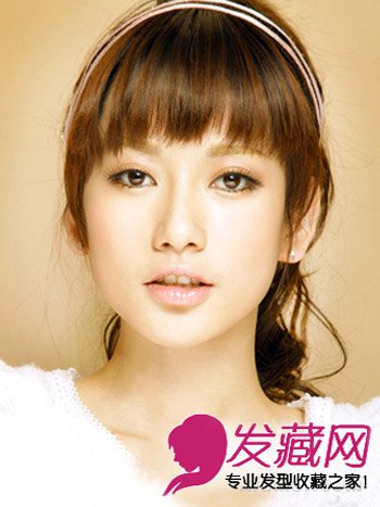 韩系简单马尾辫扎发,女生们日常最常用的一款扎发造型,搭配自然的弧度感齐刘海发丝修饰脸蛋,甜美显清纯。