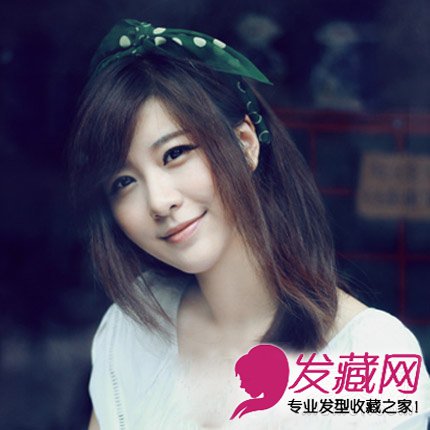 柔顺的齐肩发型如果不知道怎么扎,那么就利用发带拗出自己适合的造型吧,清甜的墨绿色发带绕过发丝至头顶,别上甜美的蝴蝶结。