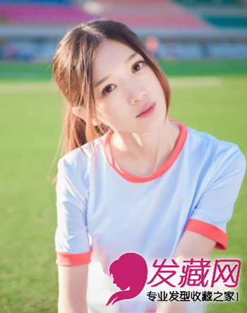 青春活力的马尾辫,朝气十足,非常适合活泼好动的女生,中分别的刘海,不仅修颜,而且尽显mm的甜美气质。