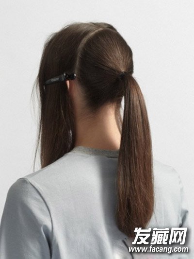 step 3.将后面部分的头发绑成第一个中马尾,高度不超过耳朵上缘。