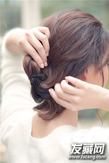 在发圈以上的头发挖出一个洞,将马尾辫子从洞中穿过后再次收紧发圈。漂亮的马尾造型就完成啦!