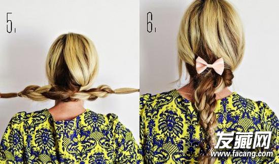步骤三:利用两股编的方式把三股辫交叉绕。