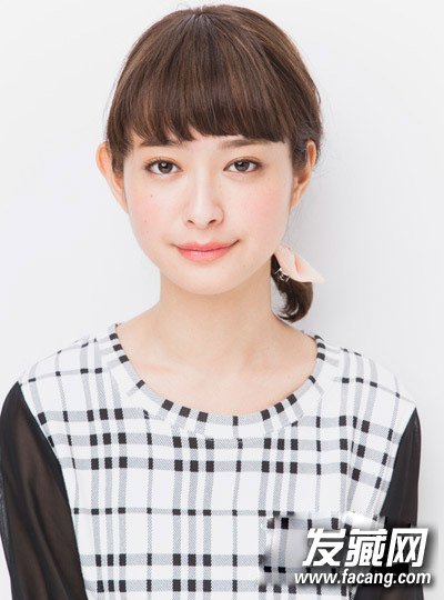 低垂的马尾慵懒甜美,搭配厚重的修颜齐刘海,展现出小可爱的慵懒气质。