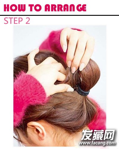 STEP 2:将头发往两边拉开一个洞,准备将马尾穿过去。