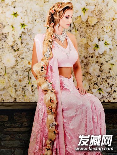 美得令人窒息!粉色的礼服与发辫头饰相呼应,不能再美好了。