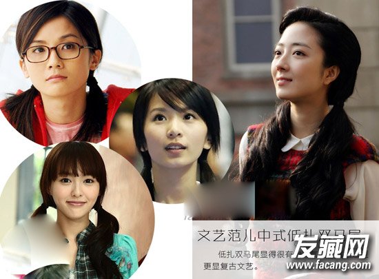 低扎双马尾显得很有淑女气质,露额造型更显复古文艺。