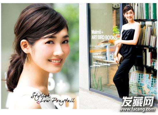 低垂马尾慵懒而性感,搭配斜刘海设计,优雅气质十分迷人。