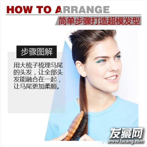 step 6:用大梳子梳理马尾的头发,让全部头发能融合在一起,让马尾更加柔顺。