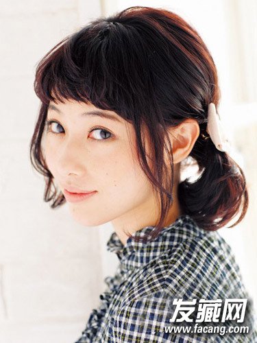 别致的刘海层次感饱满,露出眉毛的设计清新动人。侧边马尾饱满自然,女人味十足。
