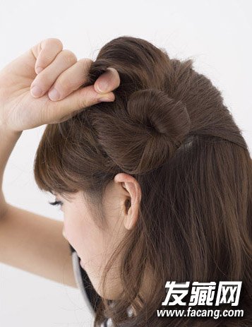 step4:再将发尾扭转成花苞头