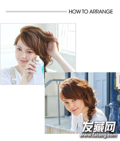 step4:将左侧的头发拉扯出蓬松感后喷上定型水。