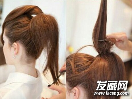 步骤7、将倒刮后的马尾自然放下,注意不要和还没有倒刮的头发放在一起哦;
