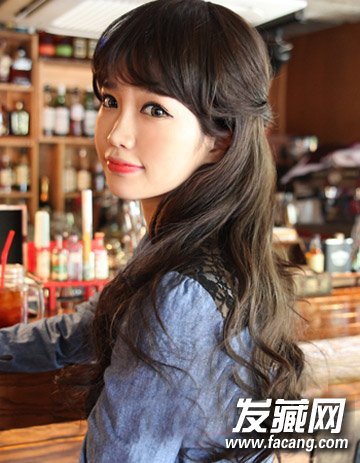 很适合淑女的一款造型, 甜美的空气刘海加上完美的公主头发型勾勒出别致的时尚感来, 长卷发优雅显知性,加上蓬松的刘海设计整个造型淑女范十足。
