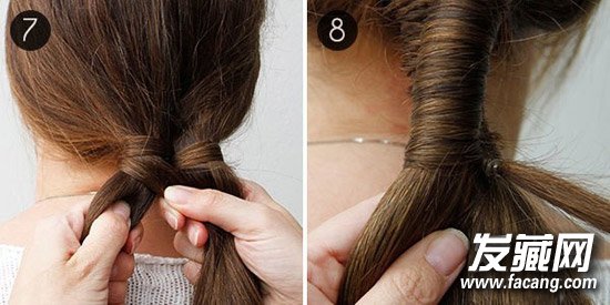 7、将合并后的头发从上方绕过左侧的头发,重复上述的步骤。如果你的头发较短,可以早些加入新的头发,便于扎发更加紧实。