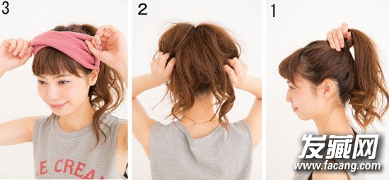 step1:将头发绑成高耸的马尾。(注意哦,教程图示从右向左)