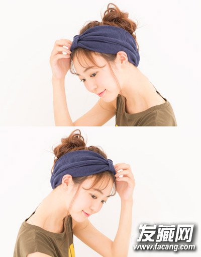 高耸的花苞头清爽甜美而不失活力,搭配头巾甜美有型。